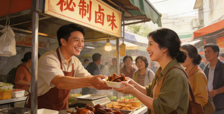 辞职后,我没有像别人那样去旅行、去“gap year”,而是一头扎进了“摆摊”这个全新的领域。我从小爱吃卤味,跟着老师傅学了三个月,从食材挑选、卤料配比到火候把控,每一个细节都反复打磨。第一次出摊时,我紧张得手心冒汗,半天不敢吆喝,直到第一位顾客买下一份卤鸭翅,对我说“味道不错”,我悬着的心才落了地。