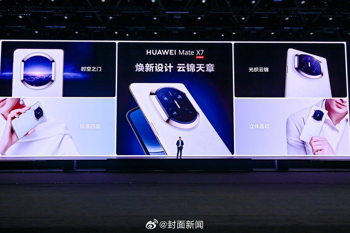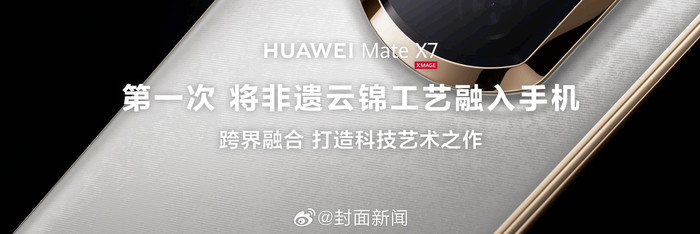 [华为打造可以握在手心的非遗云锦艺术大作!#余承东发布会现场祝大家好运似锦#]华为MateX7今日在华为新品发布会重磅登场,令人眼前一亮的是,此次华为MateX7首次将传承1600年的非遗云锦工艺融入手机背板,创新应用纳米纤维技术,造就科技和艺术的完美融合,在介绍外观时,余承东还为用户送上了美好祝福——手握云锦,好运似锦。全面焕新的设计语言,展现了华为在美学领域持续探索的成果。从非遗文化中取材,以科技语言再造,传递出技术与人文并重的东方美学范式。