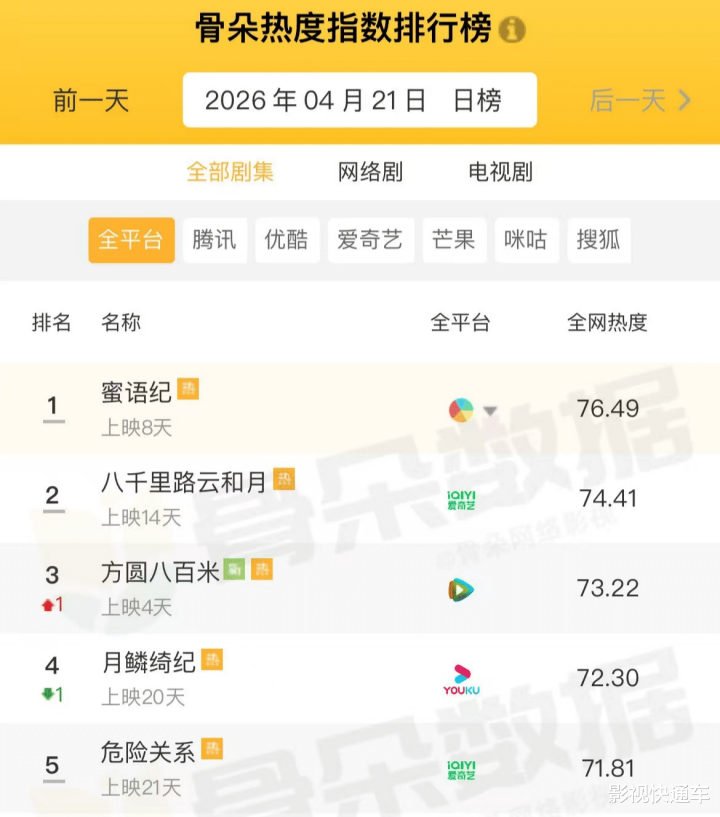 全网最新电视剧热度排行榜新鲜出炉了!