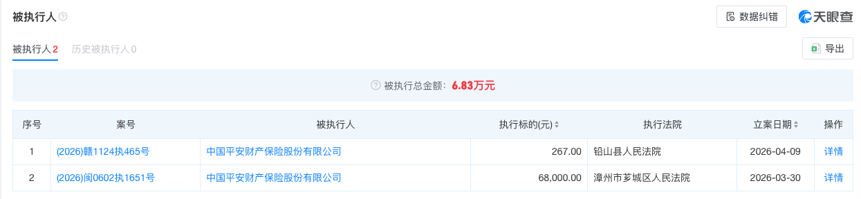 被执行人:中国平安财产保险股份有限公司